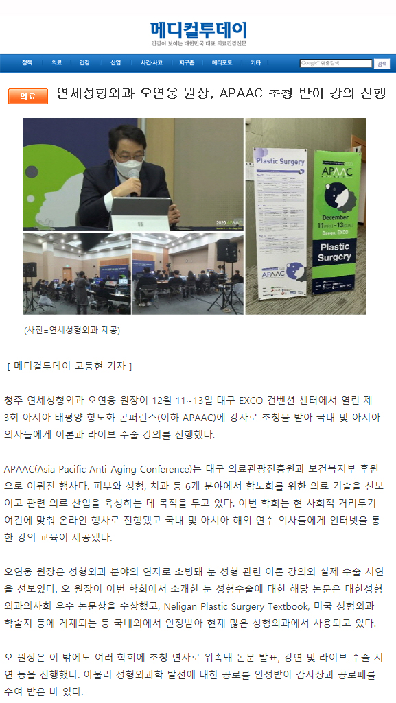 [¸ÞµðÄÃÅõµ¥ÀÌ] ¿¬¼¼¼ºÇü¿Ü°ú ¿À¿¬¿õ ¿øÀå, APAAC ÃÊû¹Þ¾Æ °ÀÇ ÁøÇà